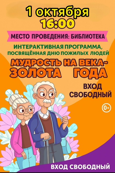 Афиша интерактивной программы, посвященная Дню пожилых людей «Мудрость на века - золота года»