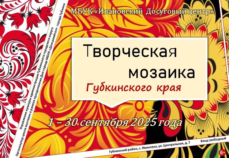С 1 по 30 сентября в МБУК «Ивановский ДЦ», в рамках празднования Дня города, открыта выставка ДПТ «Творческая мозаика Губкинского края» Приглашаем всех желающих посетить выставку.